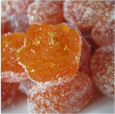 做成蜜饯金桔吃起来不但没有酸涩感,嘴也不会犯麻,甜甜糯糯的,美味极了,即可以当零食吃着玩儿,还可以加开水泡成柑桔茶喝,清清甜甜,还有股桔香味儿,常喝对嗓子也有好处。