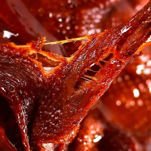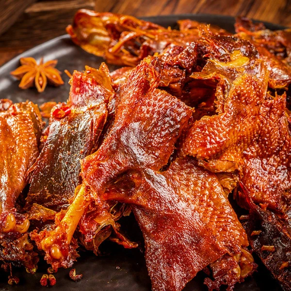 品质良好的酱板鸭酱香四溢,无其他异味。口感方面,肉质应紧实有弹性,鸭肉拉丝,口感新鲜。好的酱板鸭辣味醇厚而不燥,咸香适中,越嚼越香。