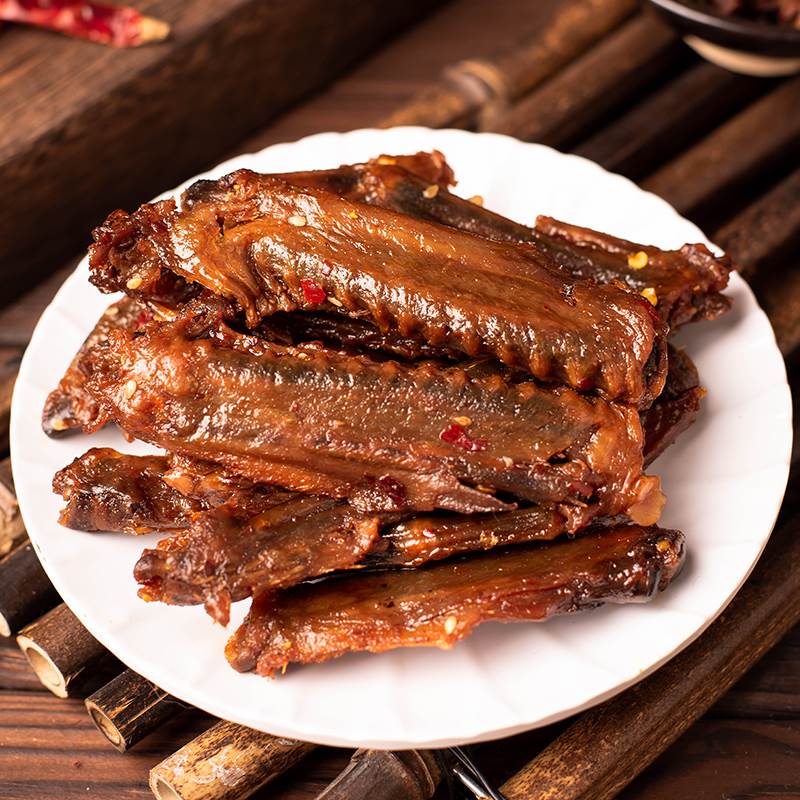 爆辣口味的酱板鸭翅通常采用湖南传统工艺制作,先卤后烤,使肉质紧实入味。